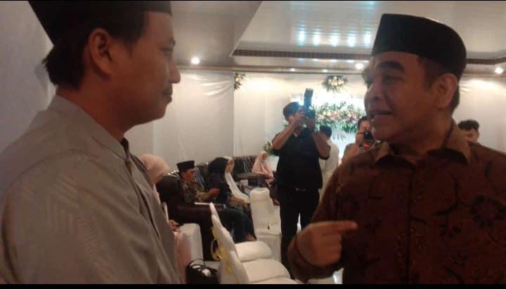Sekjen Partai Gerinda Ahmad Muzani menyempatkan menyapa pembaca doa sebelum akad nikah dilaksanakan.(istimewa)