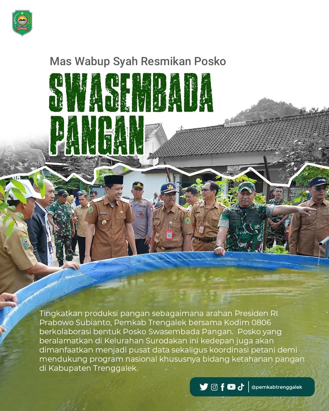 Tingkatkan produksi pangan sebagaimana arahan Presiden RI Prabowo Subianto, Pemkab Trengalek bersama Kodim 0806 berkolaborasi bentuk Posko Swasembada Pangan.